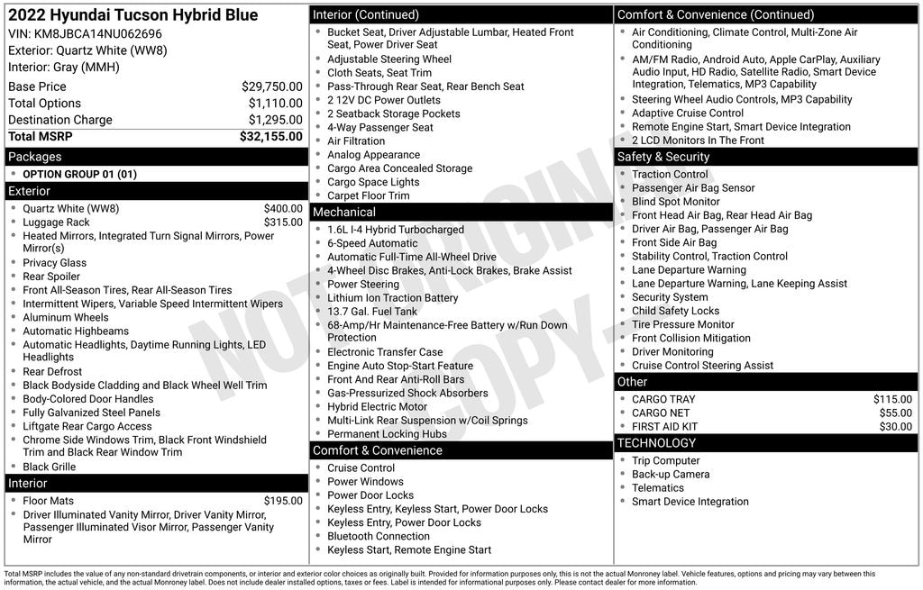 The Tucson Hybrid's impressive list of standard features includes: