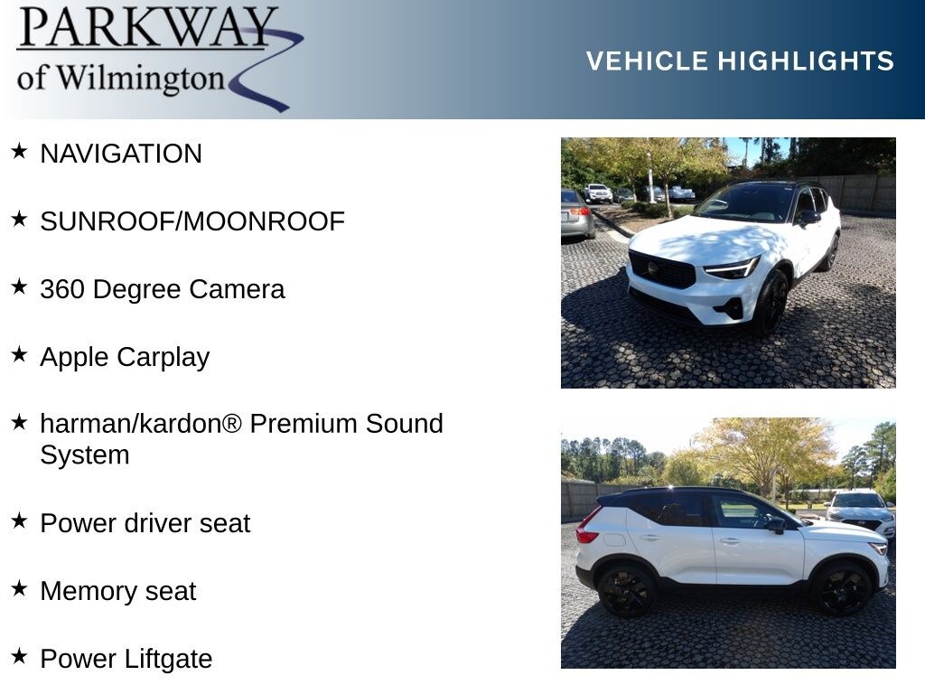 Crystal White 2026 Volvo XC40 B5 Ultra Black Edition AWD Automatic with Geartronic 2.0L I4 Turbocharged DOHC 16V LEV3-ULEV70 NAVIGATION, SUNROOF/MOONROOF, 360 Degree Camera, Apple Carplay, Active Cruise Control, Apple CarPlay, Delay-off headlights, harman/kardon® Premium Sound System, Memory seat, Power driver seat, Power Liftgate, Rain sensing wipers.
