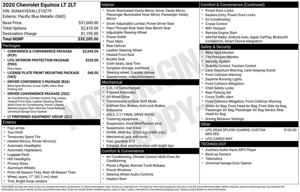 Priced below KBB Fair Purchase Price! Pacific Blue Metallic 2020 Chevrolet Equinox LT AWD 9-Speed Automatic with Overdrive 2.0L Turbocharged AWD.