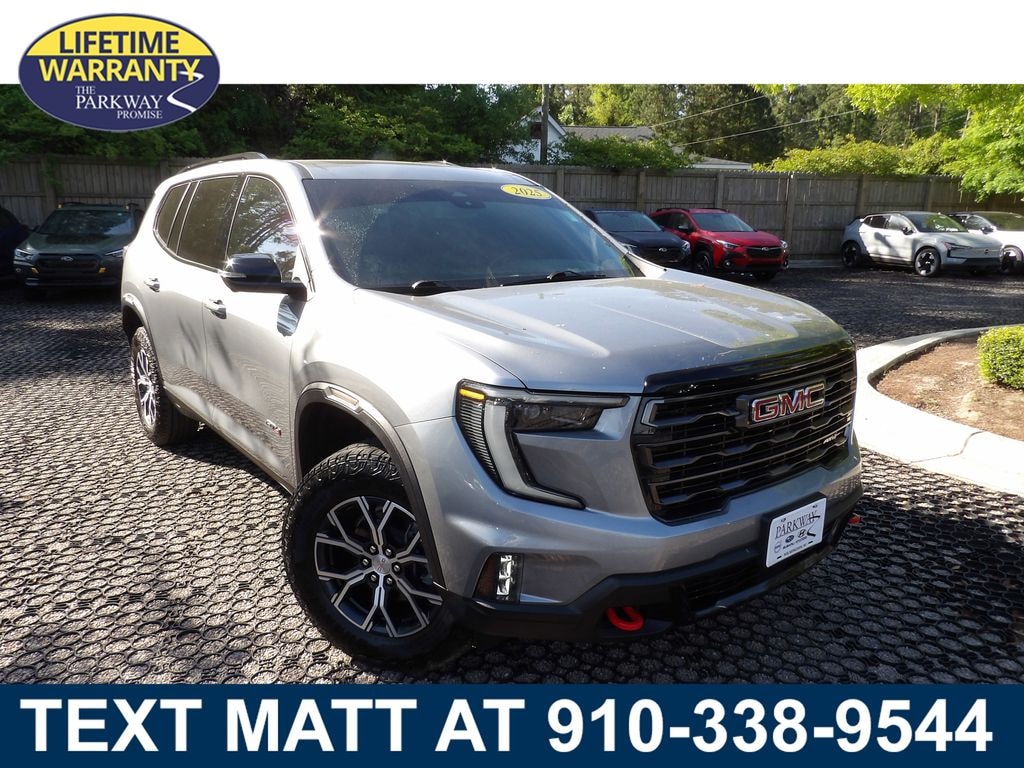 Priced below KBB Fair Purchase Price! Sterling Metallic 2025 GMC Acadia AT4 AWD 8-Speed Automatic 2.5L DOHC AWD, Forest Storm W/Mahogany Accents Cloth, 6-Way Power Front Passenger Seat Adjuster, 8-Way Power Driver Seat Adjuster, Exterior Parking Camera Rear, Panoramic Power Sunroof with Sunshade, Power Liftgate, Power windows, Remote Engine Start, Remote Keyless Entry, Steering wheel mounted audio controls.