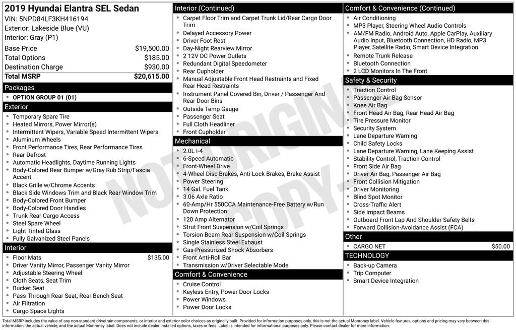 Blue 2019 Hyundai Elantra SEL FWD 6-Speed Automatic with Shiftronic 2.0L 4-Cylinder DOHC 16V