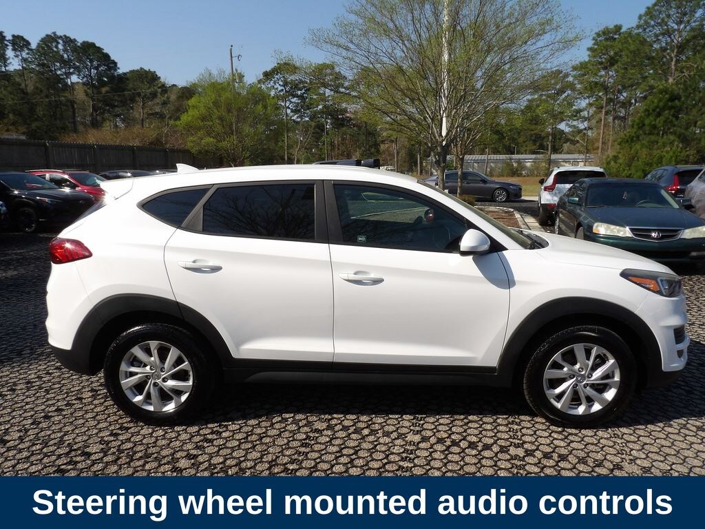 White 2019 Hyundai Tucson SE FWD 6-Speed Automatic with Shiftronic I4 Exterior Parking Camera Rear, Fully automatic headlights, Power windows, Remote Engine Start, Remote Keyless Entry, Steering wheel mounted audio controls.