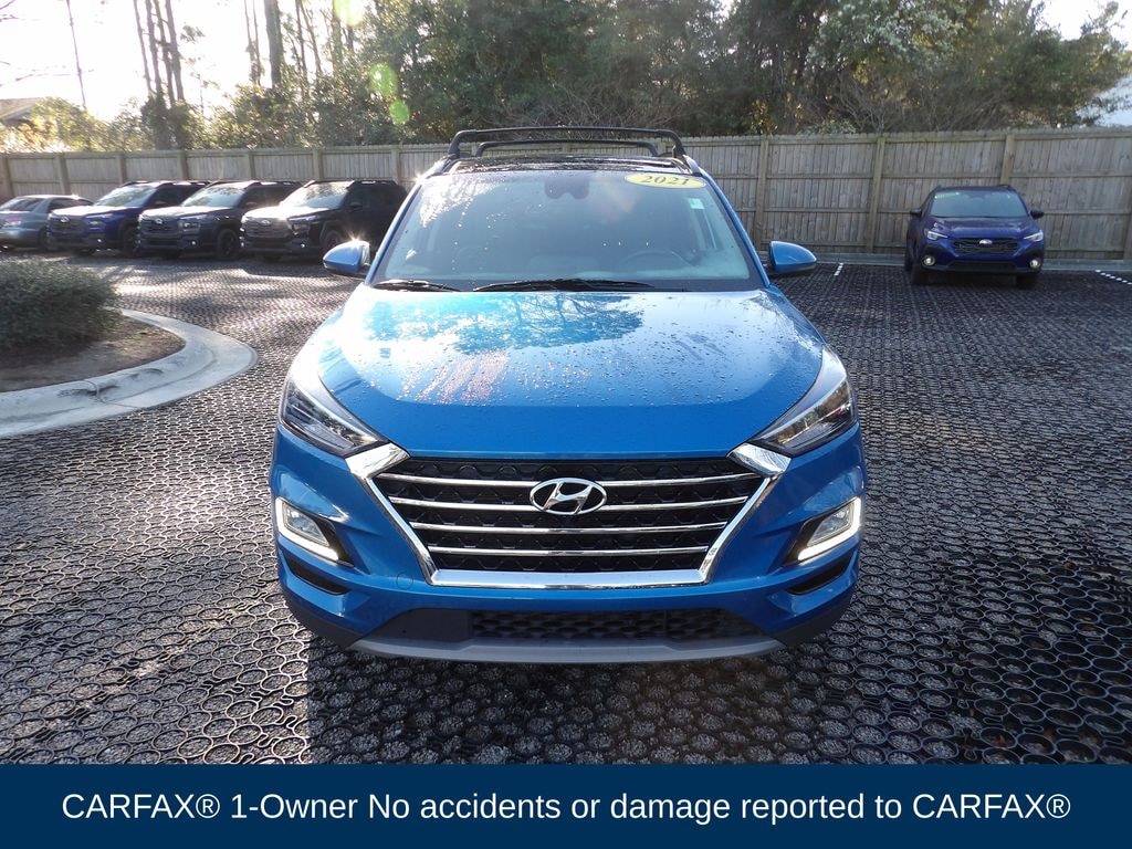 Aqua Blue 2021 Hyundai Tucson Ultimate FWD 6-Speed Automatic with Shiftronic 2.4L I4 DGI DOHC 16V Fully automatic headlights, Power driver seat, Power Liftgate, Power moonroof, Power windows, Remote Engine Start, Remote Keyless Entry, Steering wheel mounted audio controls.