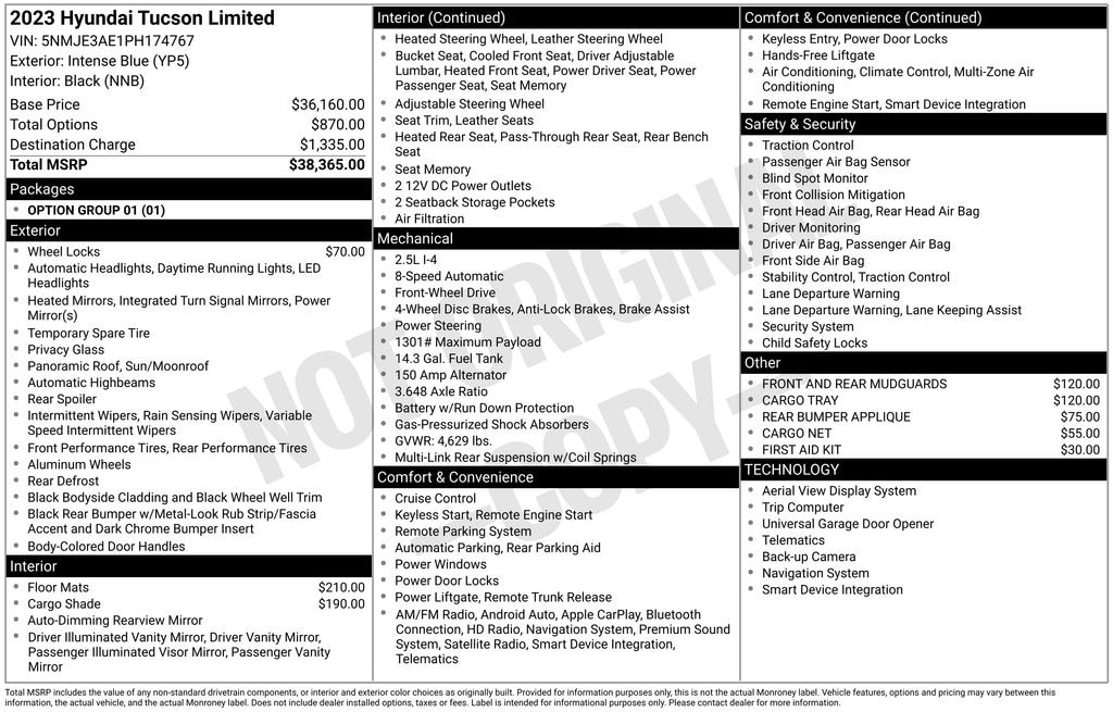 - Tracker system: Blue Link Connected Car Service (3-year complimentary subscription)