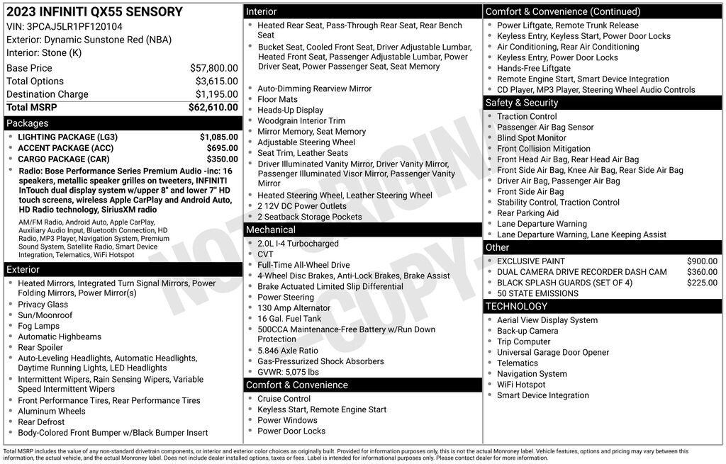 Dynamic Sunstone Red 2023 INFINITI QX55 SENSORY AWD CVT I4 NAVIGATION, SUNROOF/MOONROOF.