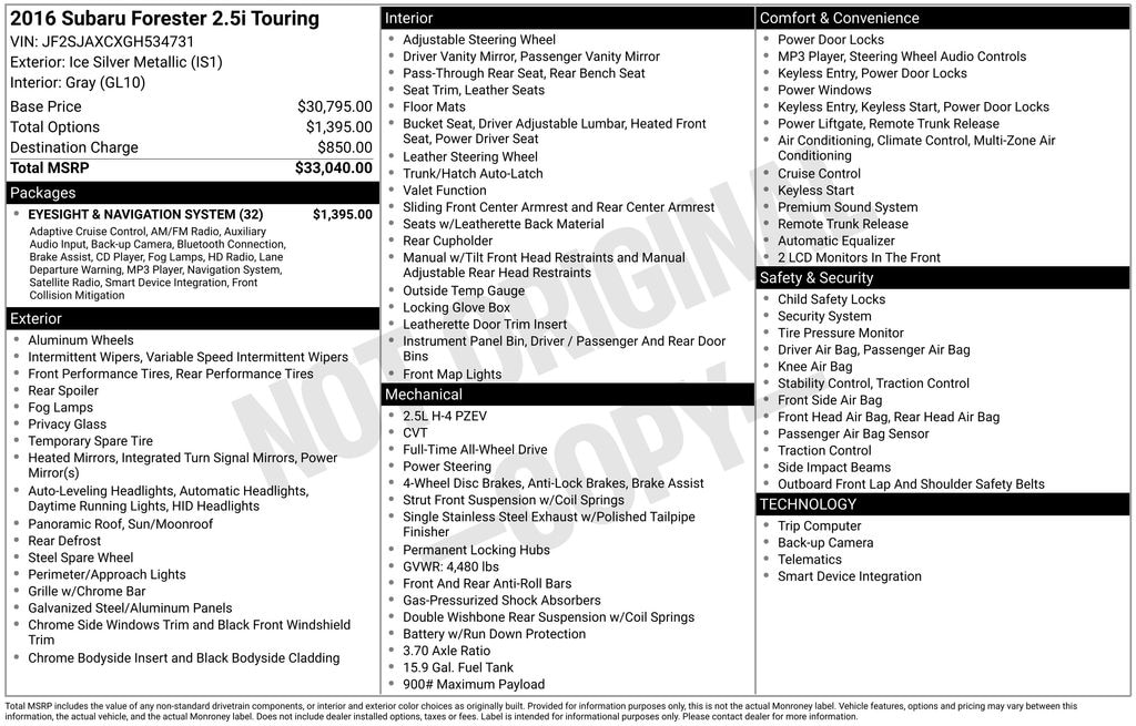 - EyeSight & Navigation System$1,395