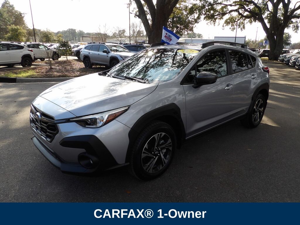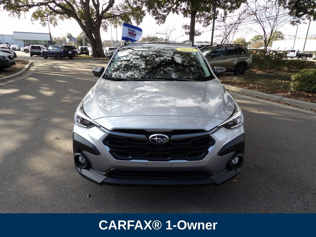 Certified. Ice Silver Metallic 2025 Subaru Crosstrek Premium AWD Lineartronic CVT 2.5L 4-Cylinder DOHC 16V Active Cruise Control, Exterior Parking Camera Rear, Fully automatic headlights, Power Moonroof, Remote Keyless Entry, Steering wheel mounted audio controls, Wireless Charger.