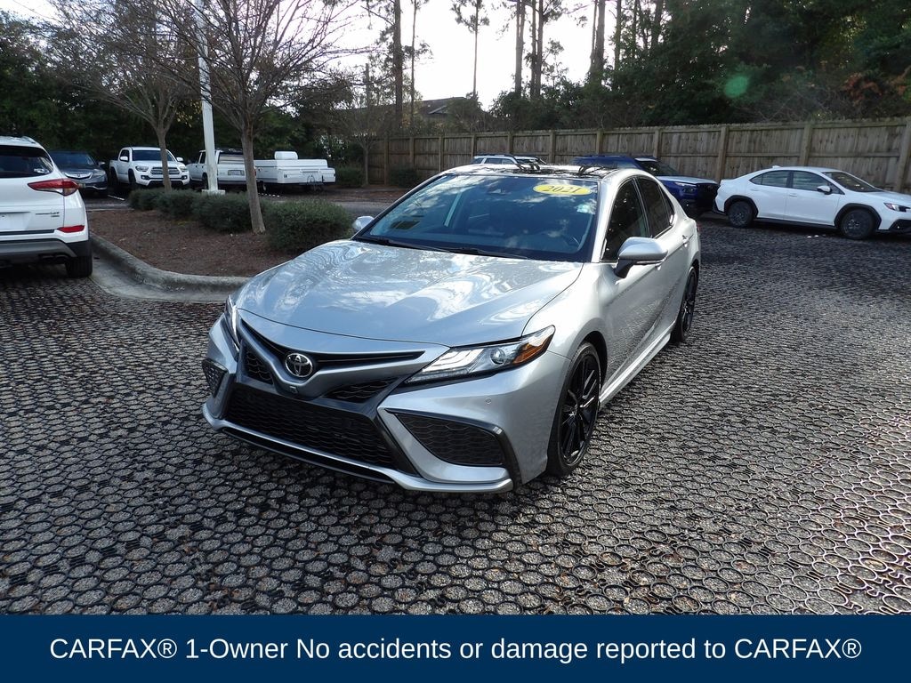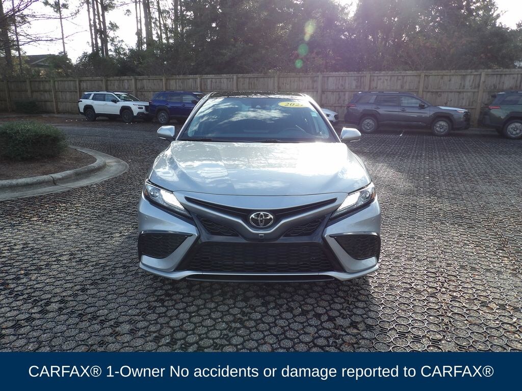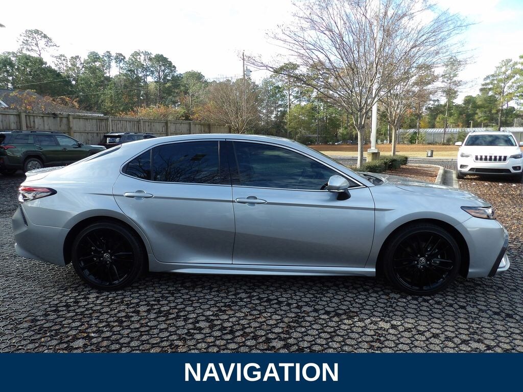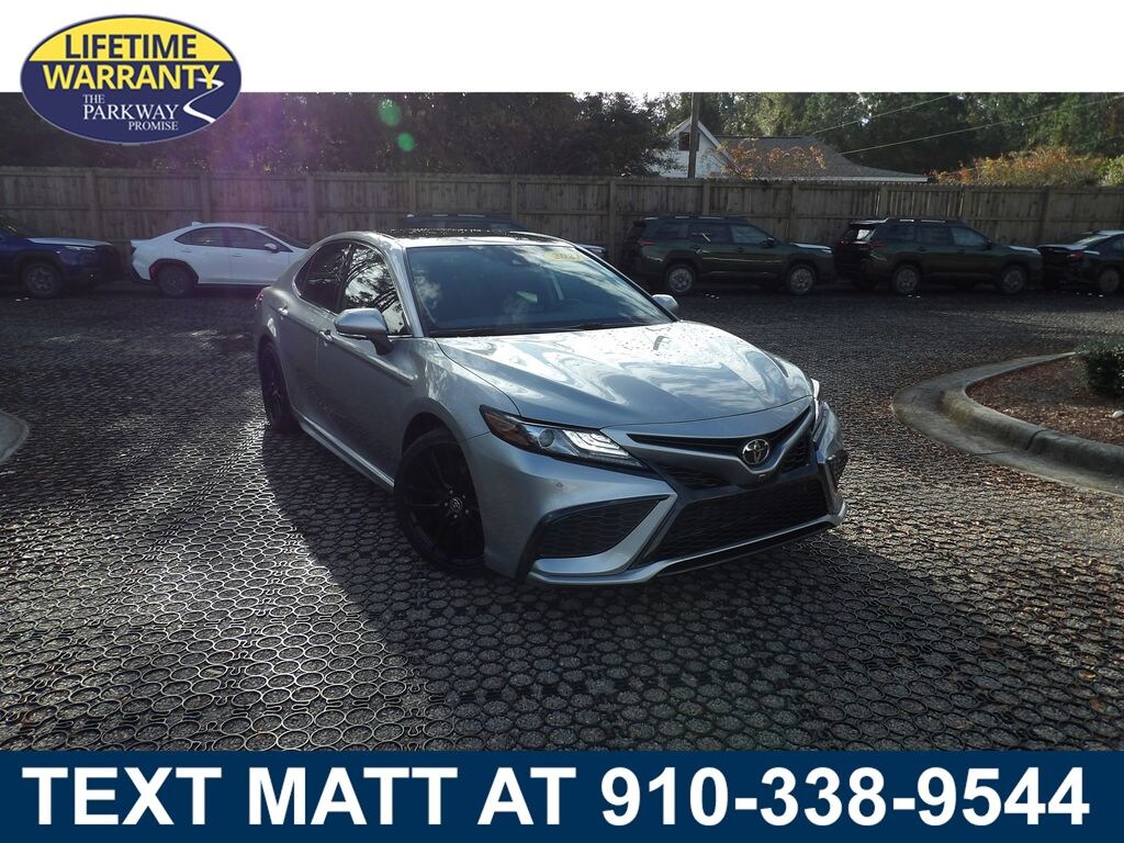 Priced below KBB Fair Purchase Price! Celestial Silver Metallic 2021 Toyota Camry XSE FWD 8-Speed Automatic 2.5L I4 DOHC 16V NAVIGATION, SUNROOF/MOONROOF, ONE OWNER, Black w/Perforated Leather Seat Trim, Active Cruise Control, Apple CarPlay/Android Auto, Exterior Parking Camera Rear, Fully automatic headlights, Heated Front Seats, Panoramic Glass Roof, Power driver seat, Remote Keyless Entry, Steering wheel mounted audio controls.