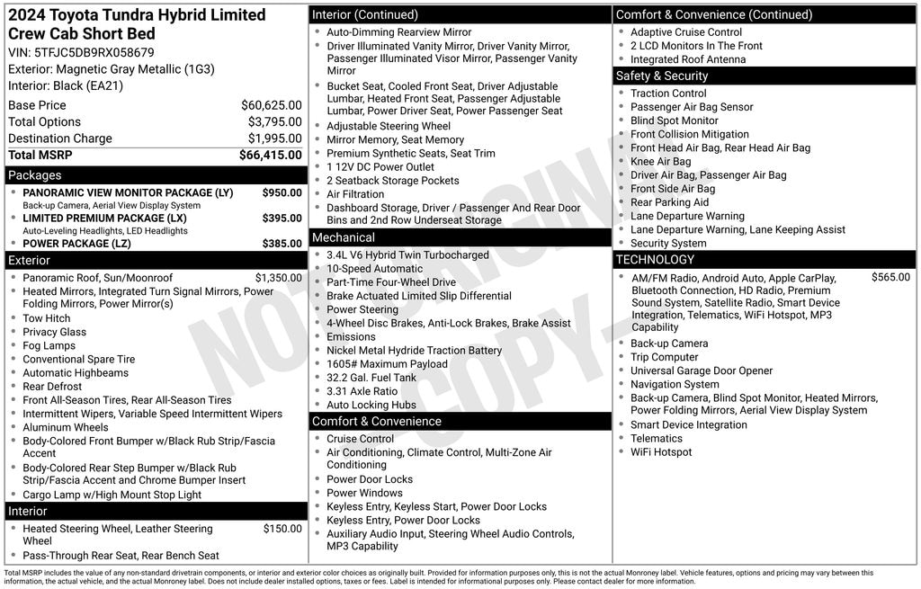 Magnetic Gray 2024 Toyota Tundra Hybrid Limited 4WD 10-Speed Automatic 3.4L V6 3.4L V6.